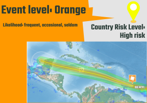 The global alert level remains red for Haiti, Grenada, Trinidad and Tobago, St Vincent and the Grenadines, Jamaica and Mexico, due to strong winds that could reach up to 269 km/h in the coming days.