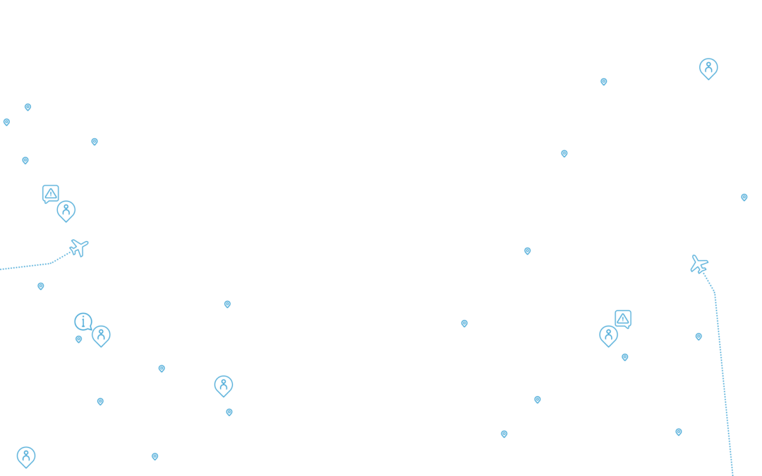 Tripcare te facilita una suite de utilidades integradas para la gestión del riesgo en viajes corporativos apoyada en la trazabilidad, seguimiento e información constantes al viajero. Con Tripcare conocerás, al momento, dónde están y a qué entorno se enfrentan los viajeros que dependen de tu empresa. Anticiparás incidencias y tomarás decisiones informadas para responder eficazmente y a tiempo, ante imprevistos, situaciones de crisis, emergencias o accidentes.